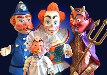 A popeyed baby stands in front of the group slightly to the left. A regular wellspring of mucous and saliva, the little mocoso nonetheless is an object of diabolical lust for Old Ned, who hovers just to Joey's left, ready at the first opportunity to pounce on the child's innocent and spotless soul. Joey restrains the Devil slightly with his left shoulder, for he is fully aware of his own role here, and knows that if push comes to shove, he can expect little real assistance from the self-important, self-satisfied, and stupid policeman.
